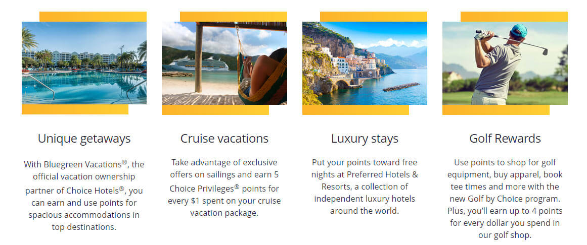 Choice Hotels is the premier partner of Bluegreen for services that range from car rental, Cruises, Golf Rewards, Airline Miles Exchange, Entertainment Savings and much, much more.